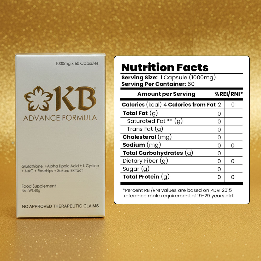 KB Advance Formula Capsules are a dietary supplement formulated with premium antioxidants and whitening ingredients that help promote healthier, brighter, and more youthful-looking skin. It’s designed to work from within to improve skin tone, protect cells from damage, and support overall wellness.