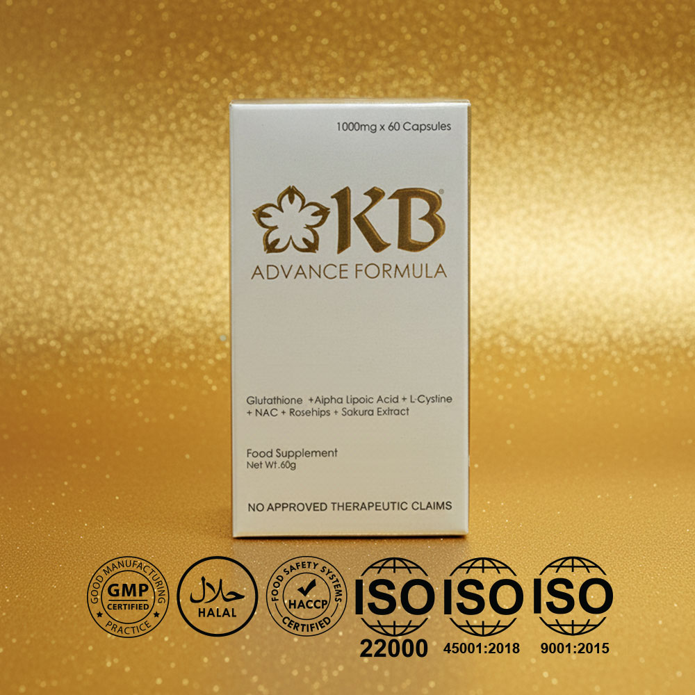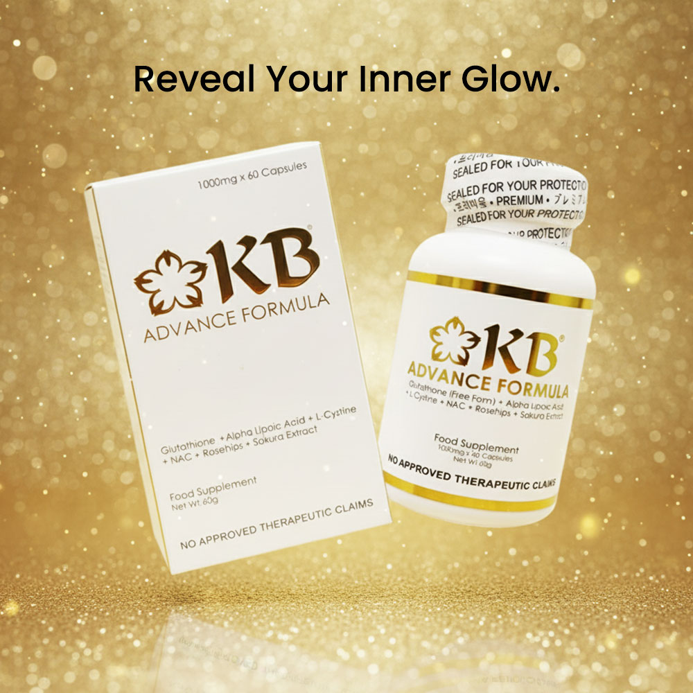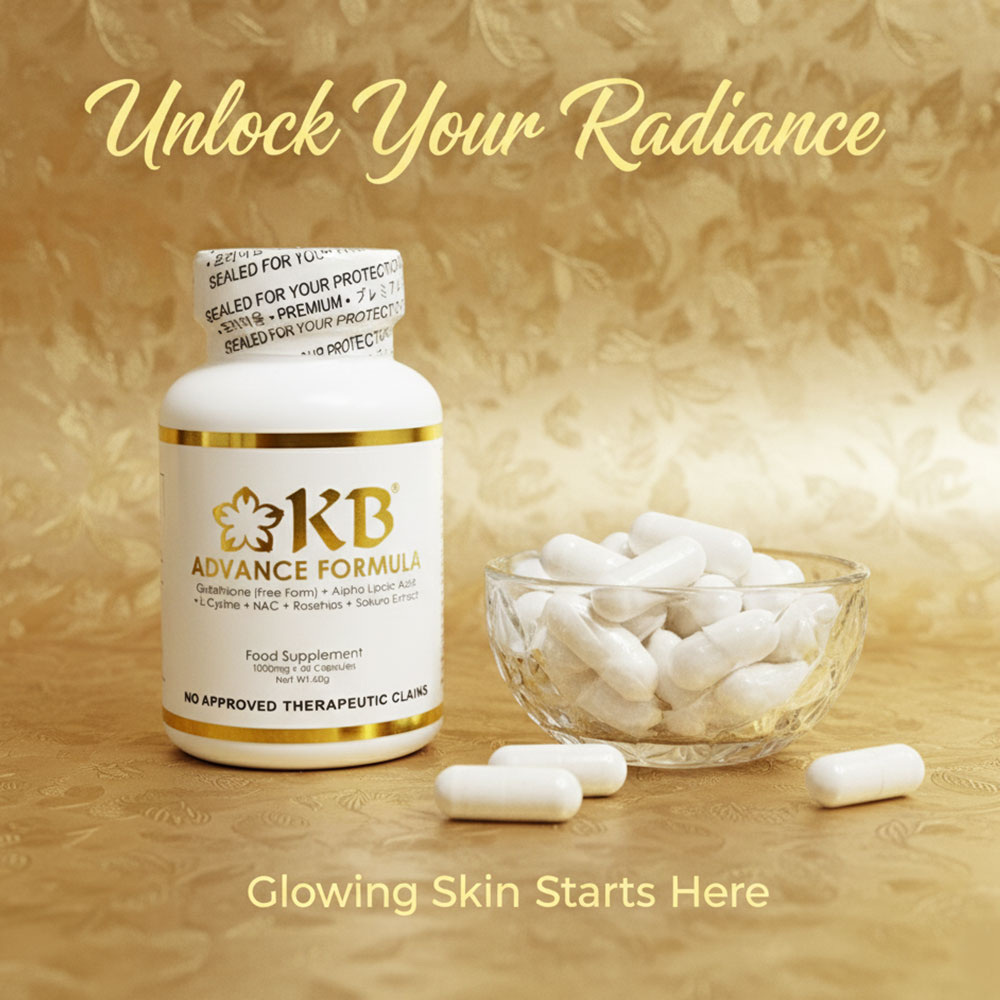 KB Advance Formula is a premium dietary supplement formulated to help promote brighter, healthier, and more radiant skin from within. Enriched with powerful antioxidants such as Glutathione, Alpha Lipoic Acid, and other skin-nourishing ingredients, it works to detoxify the body, reduce oxidative stress, and support an even skin tone. Regular use helps improve skin clarity, boost overall wellness, and enhance the natural glow for a youthful, luminous complexion.