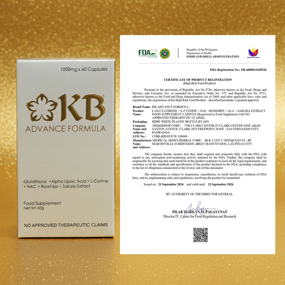 Yes. KB Advance Formula is made from high-quality, Japan-sourced ingredients and is FDA-approved. It’s free from harmful chemicals and heavy metals. However, if you are pregnant, lactating, or under medication, consult your doctor before use.