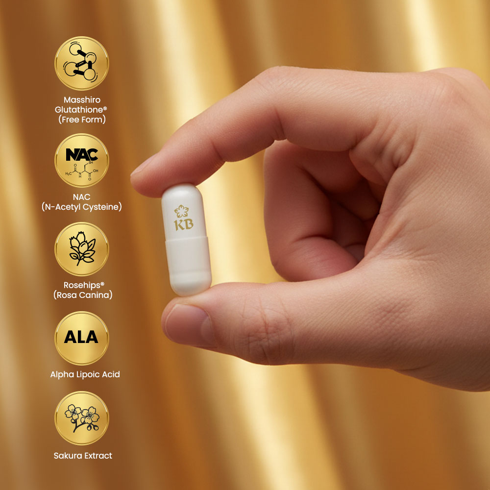 For faster results, drink plenty of water and pair with KB Glutathione + NAC + Vitamin C regimen or other KB skin care products.
