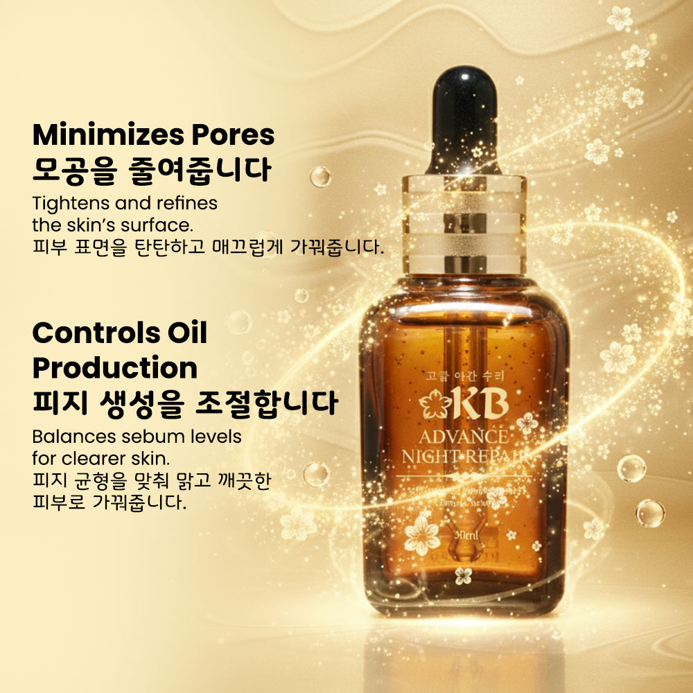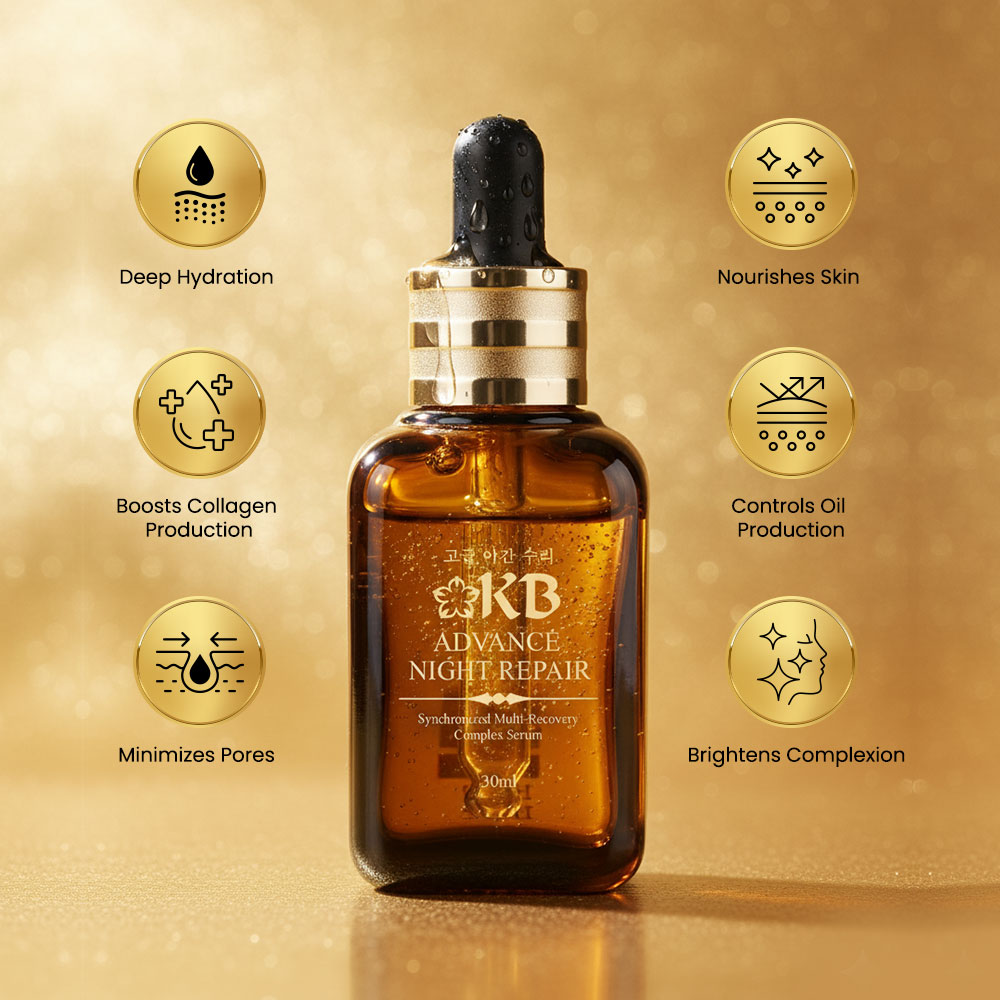 KB Advanced Night Repair Serum is a premium nighttime skincare formula designed to repair, hydrate, and rejuvenate your skin while you sleep. It helps reduce fine lines, dark spots, and dullness, promoting a youthful and radiant complexion.