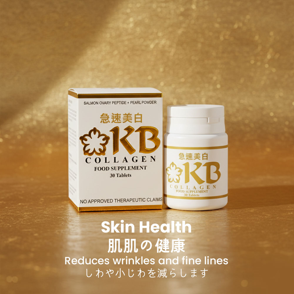 KB Collagen Tablets help support healthier, more youthful-looking skin by improving elasticity and hydration, while also promoting stronger hair and nails with regular use. They support joint comfort and mobility by nourishing connective tissues and may help protect the body from oxidative stress through antioxidant support, making them a great daily supplement for overall beauty and wellness from within.