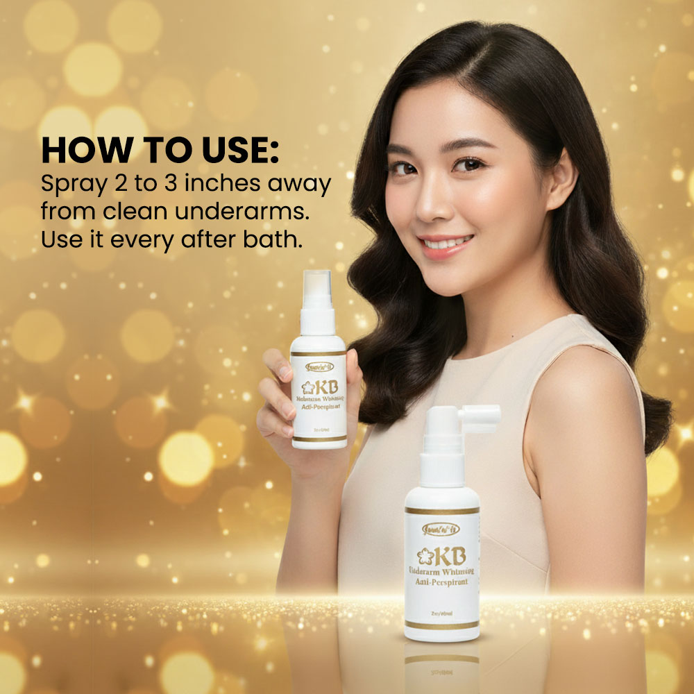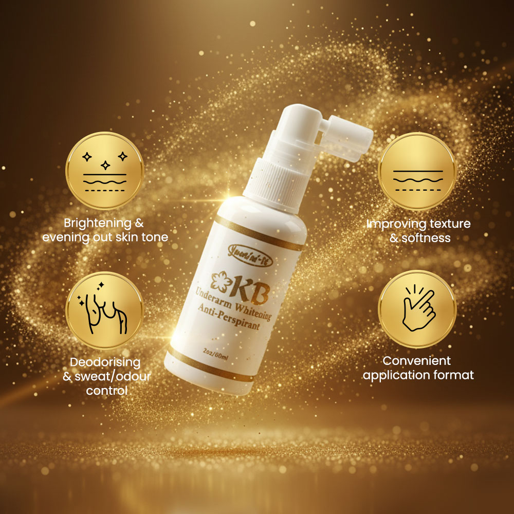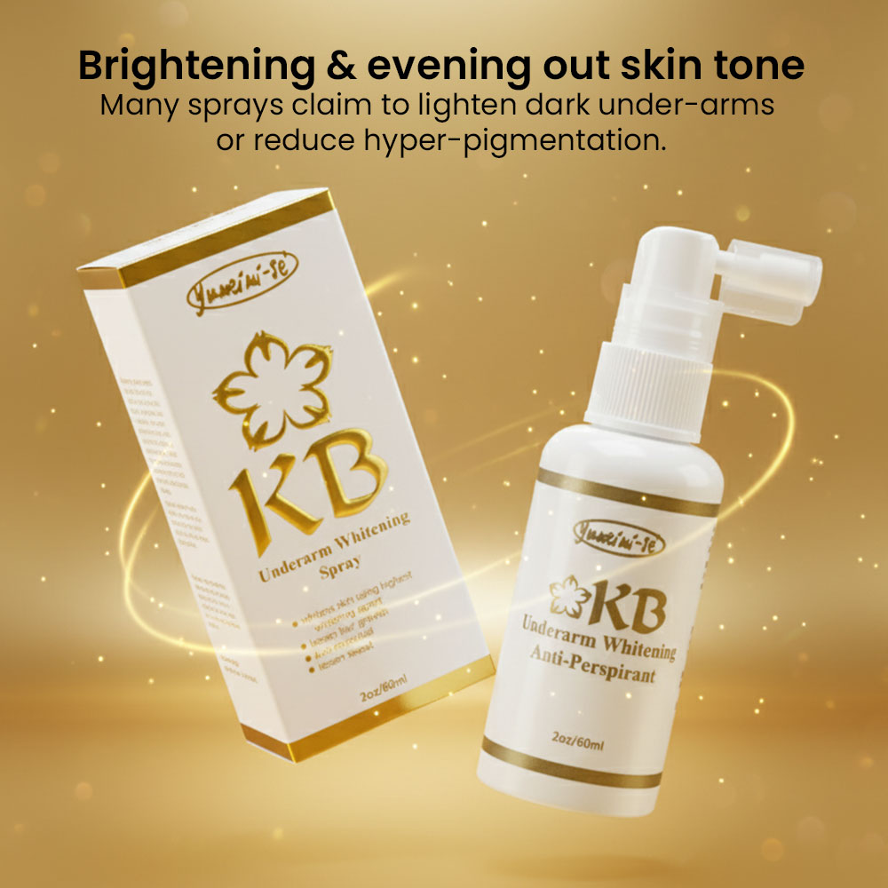 KB Whitening Underarms Spray is a specially formulated product designed to brighten and nourish the delicate skin of the underarms while providing effective odor control. This spray combines skin-whitening agents with moisturizing and soothing ingredients to help achieve a smoother, more even-toned appearance in the underarm area. Its convenient spray format makes it easy to apply, making it an ideal addition to daily grooming routines.
